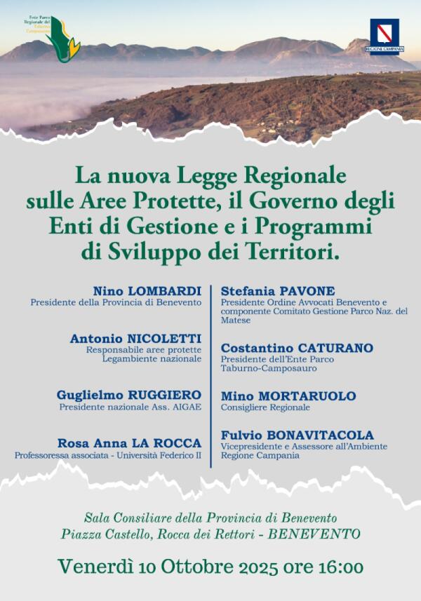 A Benevento la prima presentazione della nuova Legge Regionale sulle Aree Protette