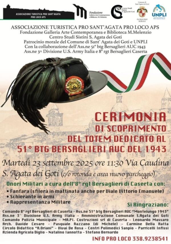 Sant'Agata dei Goti. Cerimonia di scoprimento del totem dedicato al 51° BTG Bersaglieri A.U.C. (1943).