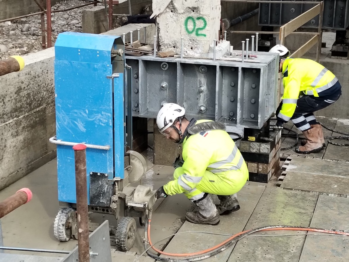 Il taglio millimetrico di porzioni di pilastri in calcestruzzo armato.